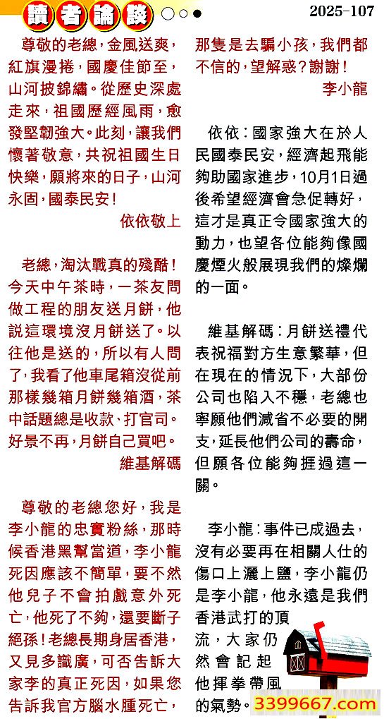 107期:彩民推荐〖貼信讀者論壇〗
