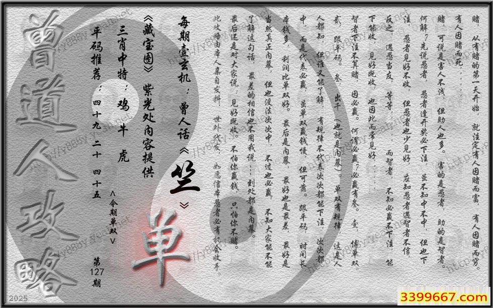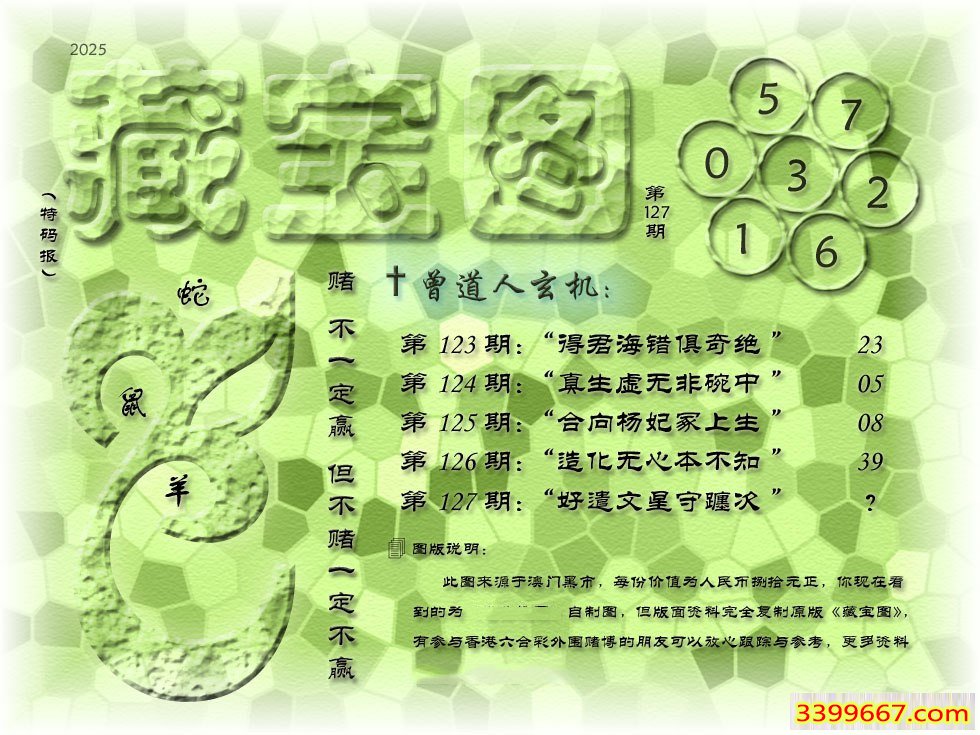 主题 :127期藏寶圖 新:好遣文星守躔次 老:毒虬相视振金环 禁:猴 禁:8尾