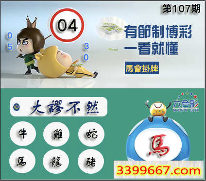 107期正版彩图挂:04 爆:马 挂牌成语:大谬不然 挂牌出肖:牛鸡蛇马龙猪
