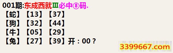 | 主题 :001期:东成西就Ⅲ必中⑧码 |