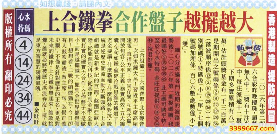 主题 :003期:金旺旺信箱彩民推荐→→《中國自強新序章》