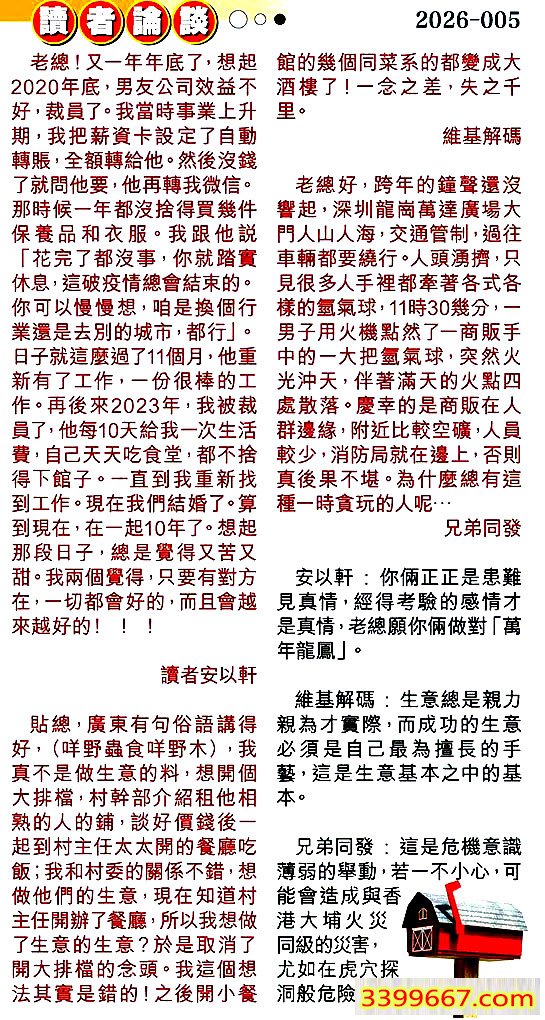 | 主题 :005期:彩民推荐〖貼信讀者論壇〗 |